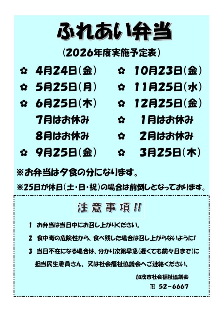 令和8年度 ふれあい弁当日程🍱